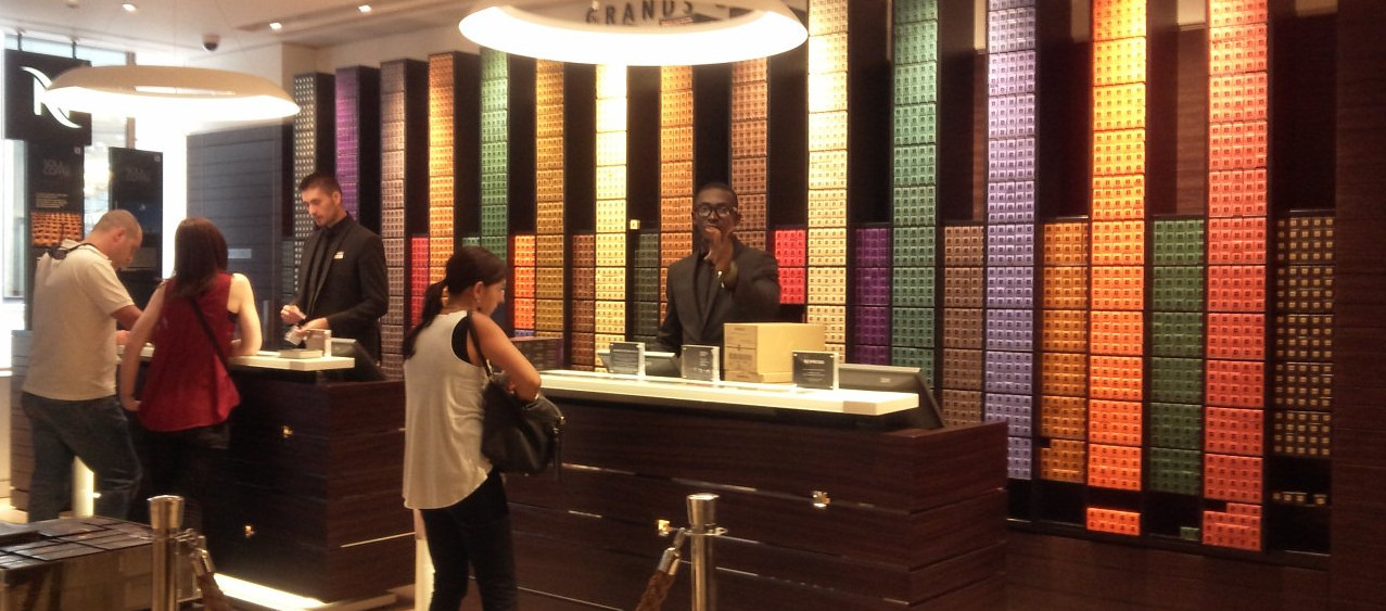 그 뒤 수요를 촉진하기 위한 테스트 결과 네스프레소 머신에서 추출한 커피를 잠재고객에게 제공하여 직접 체험시킬 경우 매출이 6배가 높다는 사실을 발견하였고 곧 화장품 업체의 전략을 모방하여 전 세계 200개 도시의 번화가에서 네스프레소 부티크를 여는 것으로 확장되었다.